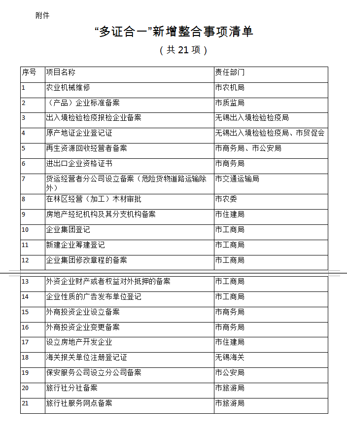附件:“多證合一”新增整合事項(xiàng)清單