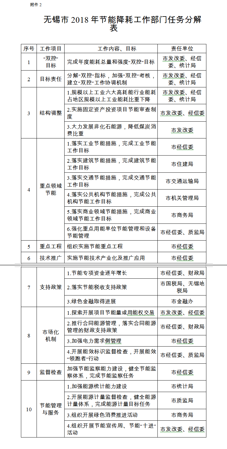 附件:1.無錫市2018年節能降耗工作各市(縣)、區政府目標分解表