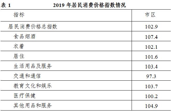 全年市區(qū)居民消費(fèi)價(jià)格指數(shù)(CPI)為102.9,比上年提高0.6個(gè)百分點(diǎn)。其中服務(wù)項(xiàng)目價(jià)格指數(shù)為102.1,消費(fèi)品價(jià)格指數(shù)為103.5。