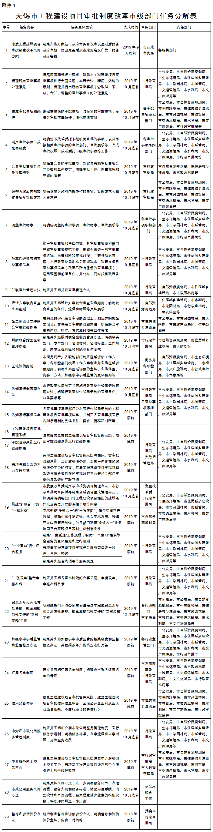附件:1.無(wú)錫市工程建設(shè)項(xiàng)目審批制度改革市級(jí)部門任務(wù)分解表