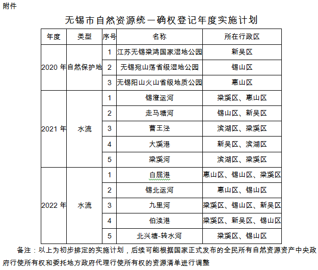 附件:無錫市自然資源統一確權登記年度實施計劃