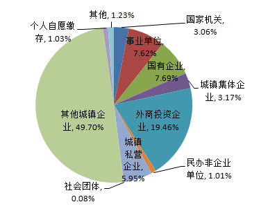 2020年三季度實繳職工數按不同性質單位分類占比圖