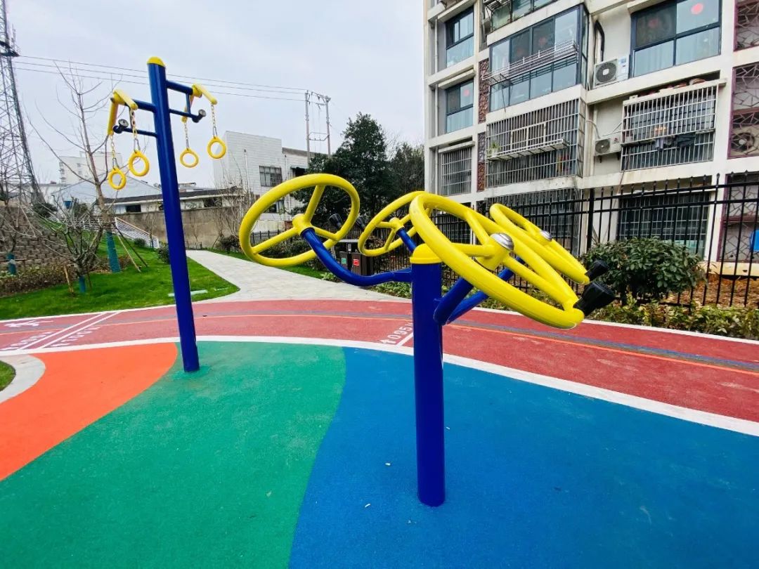 漫步其中,生態擋土墻構造出層次豐富的臺地景觀,曲線臺階園路連接圓形塑膠活動場地,設計現代感滿滿。
