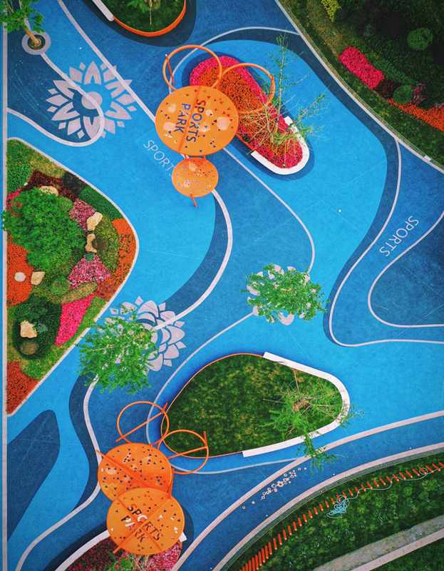 以天空藍(lán)顏色為主基調(diào)的健身步道貫穿整個(gè)云林生態(tài)體育公園,總長2600米,這里可徒步,可騎行,可樂跑。不用加任何濾鏡,就能輕松拍出各式美照。