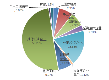 2021年四季度實繳職工數按不同性質單位分類占比圖