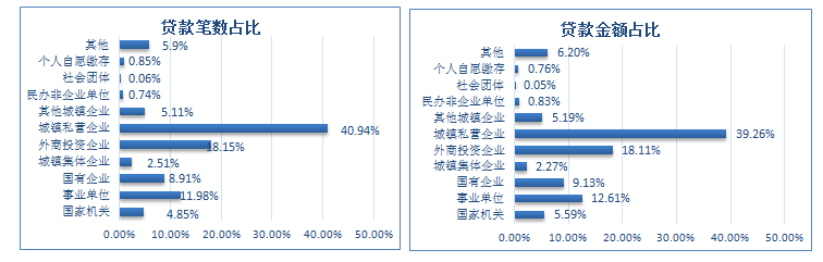 2021年四季度職工貸款筆數及貸款金額按單位性質分類占比圖
