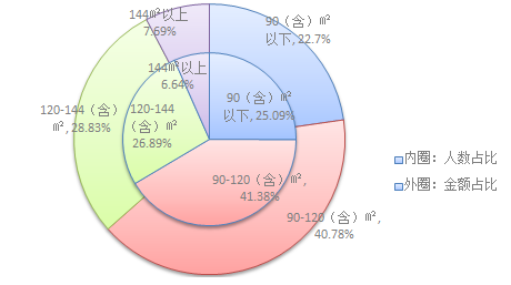 從貸款群體來看,剛需與改善型住房需求職工分別占貸款總人數的25.09%和68.28%。從單位性質來看,以城鎮私營企業職工為主,貸款筆數和貸款金額占比分別為40.94%、39.26%。從購房面積來看,職工貸款購買90-120(含)㎡、120-144(含)㎡房屋居多,分別占貸款總人數的41.38%、26.89%。從主借人繳存基數來看,貸款主要以中、低收入職工為主,分別占貸款總人數的36.77%、59.55%,說明我市住房公積金貸款政策在保障剛需職工需求,體現住房公積金互助性方面發揮了較大的作用,住房公積金制度的初衷未改變。具體放貸結構如下: