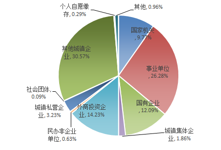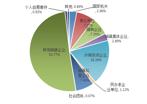 2022年一季度實繳職工數(shù)按不同性質單位分類占比圖