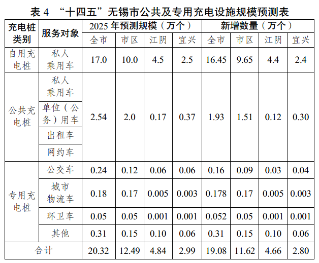 經測算,到2025年無錫市充電樁需求約20.3萬個,其中公共充電樁約2.5萬個,專用充電樁約0.8萬個,私人自用充電樁約17萬個。