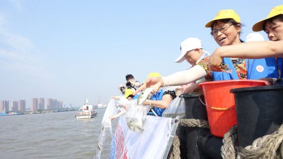恢復(fù)魚(yú)類資源,“以江為生”的江陰人率先自發(fā)開(kāi)始增殖放流。“第一次是2002年6月20日,在長(zhǎng)江江陰利港段,我將親手培育繁殖的40萬(wàn)尾河豚魚(yú)苗無(wú)償放流。”年過(guò)七旬的“河豚大王”鄭金良記憶猶新。一石激起千層浪,一次放流行動(dòng)就引發(fā)了更多人對(duì)保護(hù)“母親河”魚(yú)類資源的關(guān)注,江陰市更是把每年的6月12日定為“長(zhǎng)江放流日”,引領(lǐng)更多人參與到長(zhǎng)江大保護(hù)的歷史實(shí)踐中。