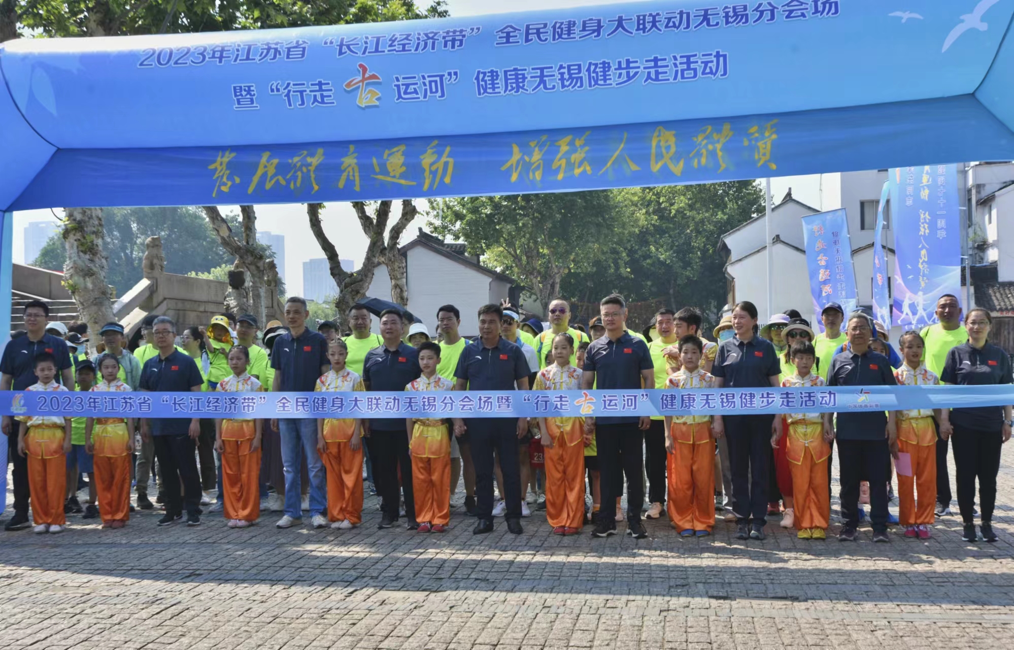 為紀念毛澤東同志題詞71周年,6月10日上午,2023年江蘇省“長江經濟帶”全民健身大聯動無錫分會場暨“行走古運河”健康無錫健步走活動在清名橋畔舉辦。