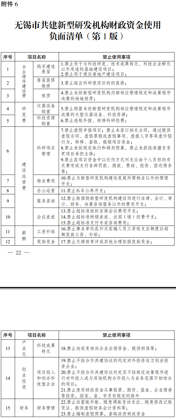 6.無錫市共建新型研發機構財政資金使用負面清單