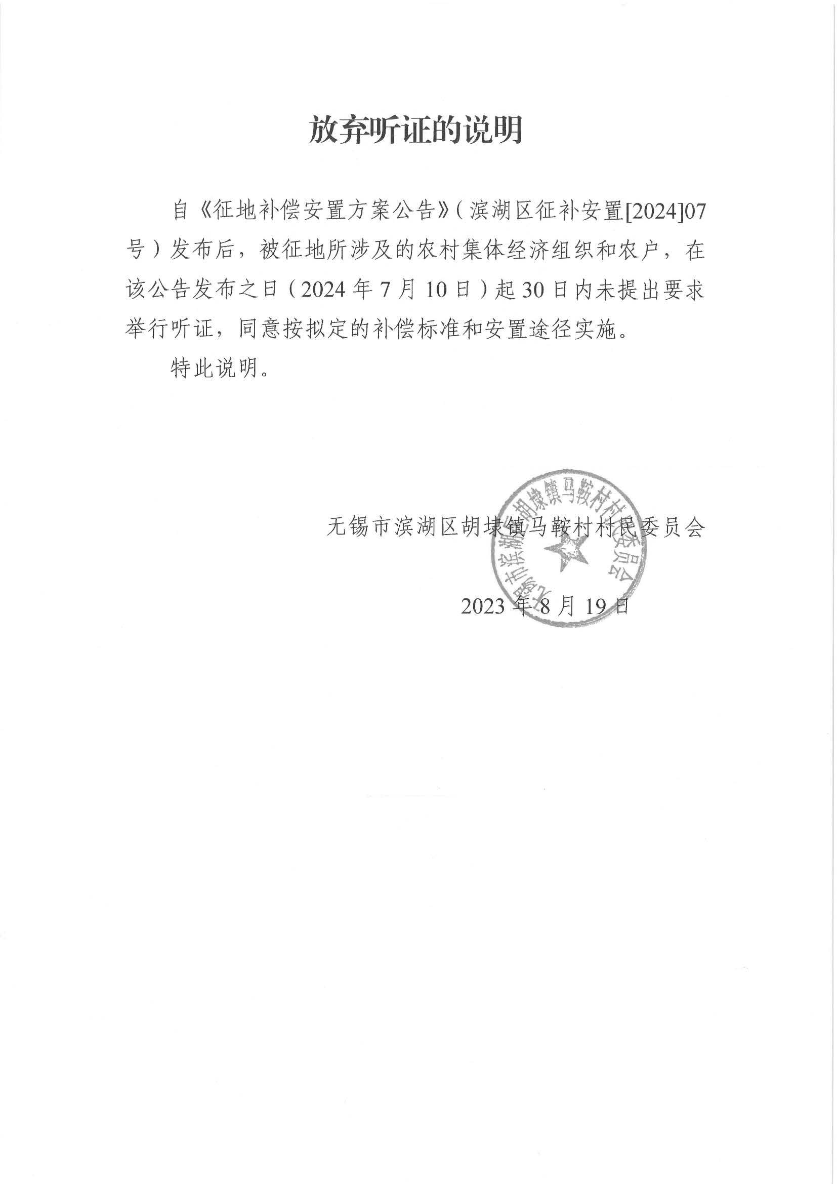 無錫市濱湖區2024年度第4批次村鎮建設用地-聽證情況說明 |