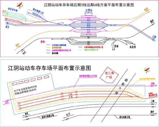 根據批復文件,江陰站增建動車存車場工程線路起自既有江陰站綜合維修工區走行線引出,新建動車走行線、3線存車場及相關工程。3條存車線有效長均可滿足2列8輛編組動車組存放條件,建設工期為18個月。預測近期2035年辦理始發終到動車組列車10對/日,遠期2045年辦理列車20對/日。