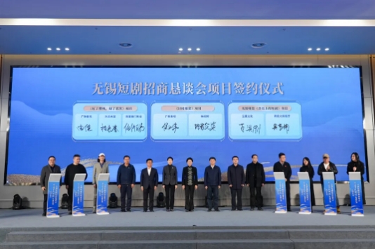 會上,無錫市大運河短劇計劃正式發布,鏈主企業喜豹傳奇總部入駐無錫經開未來園區,《大商無算》《計時相愛》《周新傳奇》等十個重點項目簽約落地,取得短劇產業發展的開門紅。