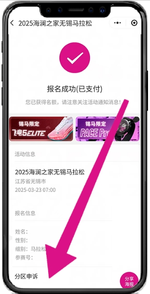 如果對自己的分區有異議,可在3月8日17:00之前,在錫馬「參賽助手」小程序「報名查詢」中的參賽號下方進行分區申訴登記,我們將在復核無誤后調整。