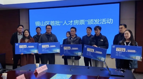 3月19日,5位人才精英從錫山區(qū)委人才辦、區(qū)科技局、區(qū)人力資源和社會(huì)保障局、區(qū)住房城鄉(xiāng)建設(shè)局相關(guān)負(fù)責(zé)人手中接過了總價(jià)75萬元的“人才房票”,成為錫山區(qū)首批“人才房票”申領(lǐng)成功者。據(jù)悉,錫山區(qū)“人才房票”購(gòu)房補(bǔ)貼覆蓋大專及以上學(xué)歷等不同類別的人才,補(bǔ)貼金額從5萬元至500萬元不等。首批申領(lǐng)者表示,這筆“人才房票”購(gòu)房補(bǔ)貼將進(jìn)一步推動(dòng)他們?cè)阱a山選房購(gòu)房的進(jìn)程。