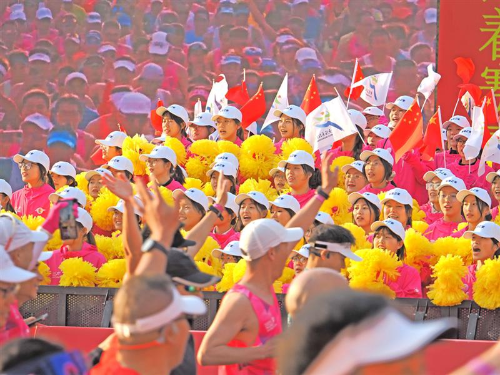 “加油!還有最后5公里!”上午9點(diǎn),賽道旁市民小李舉著自制應(yīng)援牌,為跑者吶喊助威。他的身后,是4600余名安保人員組成的“人墻”。安保人員在維持秩序的同時(shí),也為市民提供觀賽指引。“賽道穿越點(diǎn)很貼心,我騎車去觀賽點(diǎn)只繞行了10分鐘。”小李點(diǎn)贊道。