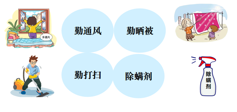 由于塵螨廣泛分布于居室環(huán)境內(nèi),常年存在且難以規(guī)避,世界衛(wèi)生組織推薦對于過敏性疾病的治療強(qiáng)調(diào)“四位一體”的綜合管理,我們要共同破壞塵螨的家,斷了塵螨的糧。