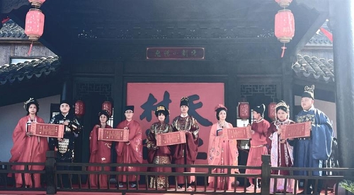 此外,圍繞“520”這個新人們喜愛的日子,各地婚姻登記處活動多多。在梁溪區,全省首個商業綜合體內的婚姻登記點正式啟用,并舉辦了“喜結梁緣”集體婚禮,以獨特的地域文化為背景,為新人打造了一場浪漫而難忘的婚禮。在濱湖區,在一場“520——同船共渡 情定蠡湖”的主題活動中,新人們乘坐船只,在蠡湖上共同度過一段浪漫時光,寓意夫妻同舟共濟、攜手共進。“重回80年代·煙火北橋”集體頒證活動則讓新人仿佛穿越回那個充滿煙火氣的年代,感受20世紀80年代的純真與美好,以一種懷舊而又新穎的方式開啟婚姻生活。在新吳區舉行的“梁鴻心相印 新吳愛同行”活動中,該區婚姻家庭指導服務中心掛牌成立,同時啟動了“愛·成長——新婚陪跑三年計劃”系列的“幸福大平臺建設”活動,將為新人提供婚姻家庭指導服務,幫助他們更好地適應婚姻生活,提升婚姻質量,構建幸福家庭。