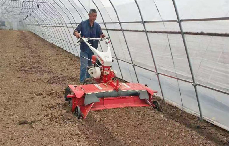 近日,惠山精細蔬菜產業園的蔬菜大棚內,一名農技員向20多名菜農講解新到的久保田耕地機性能后,開著耕地機現場演示。