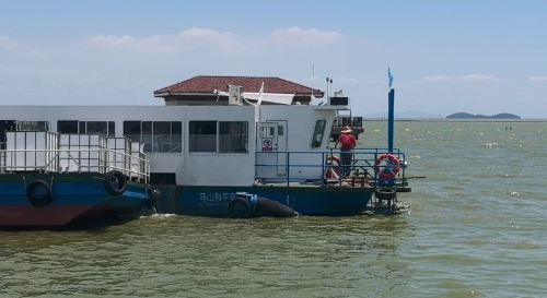 在太湖馬山段水域靈湖碼頭沿岸看到,遠處有黑色圍隔、藍藻打撈處置一體船進行離岸打撈,近岸有10座呈蓮花狀水霧的大型曝氣設施和推流器、推流槍等近10座導流、增氧小型設備增強水體流動性,1艘藍藻打撈處置一體船和2艘藍藻處置船、1艘運藻船全力運行。太湖馬山段藍藻打撈治理相關負責人胡娟說:“今年優化了藍藻打撈體系,太湖沿岸每段都有片長,每個片每個打撈點都有負責人,這樣哪里藍藻多,打撈船等設施就往哪里去,和原先以街道為單位的打撈方式比更靈活、機械船只配備效率更高。”常年調引太湖水以優化水環境的梁溪河,也已進入“見藻就見人、見船、見打撈設備運行”狀態。“今年截至目前,梁溪河每天打撈藻類約5—10噸,較往年同期28—50噸的日均打撈量顯著減少。”濱湖環衛河道所所長楊堅說。