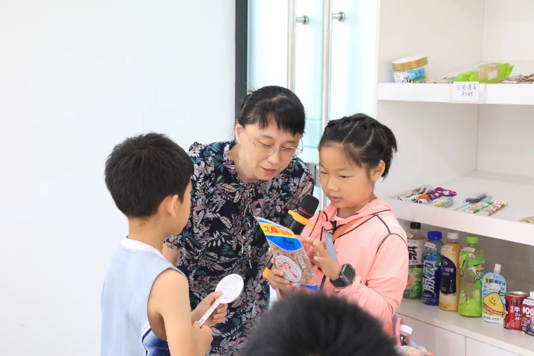 “配料表里的奧秘藏在這里!”中心科普老師通過圖文并茂的PPT,全面解析了食品標(biāo)簽中各項(xiàng)指標(biāo)的科學(xué)內(nèi)涵,指導(dǎo)孩子們辨別更健康、更適合自己的產(chǎn)品,孩子們現(xiàn)場比對多款飲料和零食的配料表,在情景化"模擬超市"中實(shí)踐生產(chǎn)日期識別、營養(yǎng)成分解讀等實(shí)用技能,筑牢食品安全認(rèn)知基礎(chǔ)。“怎么吃飯才能保證獲得足夠的營養(yǎng)?”在膳食寶塔模型前,中心科普老師用實(shí)物指導(dǎo)孩子們自主搭配三餐,營養(yǎng)均衡的理念深植童心。
