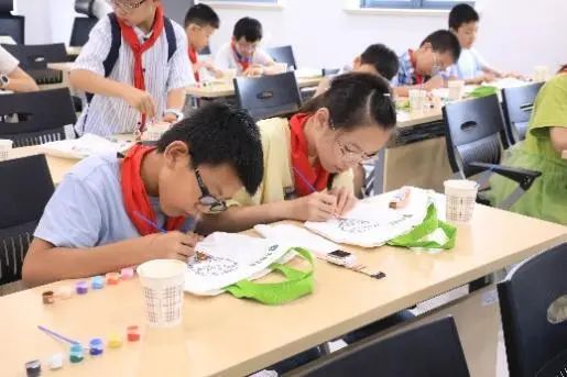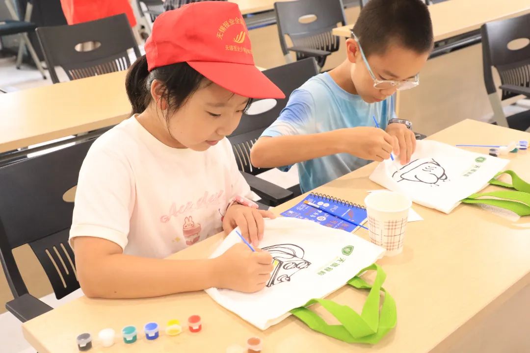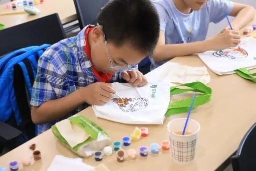 帆布包彩繪環(huán)節(jié)充滿歡聲笑語。孩子們?yōu)榈案狻垐F(tuán)等食物線稿填色,用繽紛色彩詮釋對健康飲食的理解,一幅幅童趣作品成為難忘的暑期記憶。