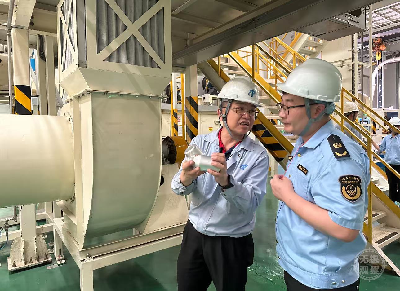 來到無錫宏仁電子材料科技有限公司,執法人員深入廠區危化品倉庫及臨時存放點,對儲存條件、安全標識、出入庫記錄及應急設施進行細查,同時針對近期極端天氣特點,給出專業的整改建議:“增設防風固定裝置,對遇水易發生反應的危化品務必轉移至符合標準的室內倉庫,同時要全面檢查并疏通倉庫周邊的排水系統。”企業在檢查人員的建議下對防汛應急預案進行了完善。