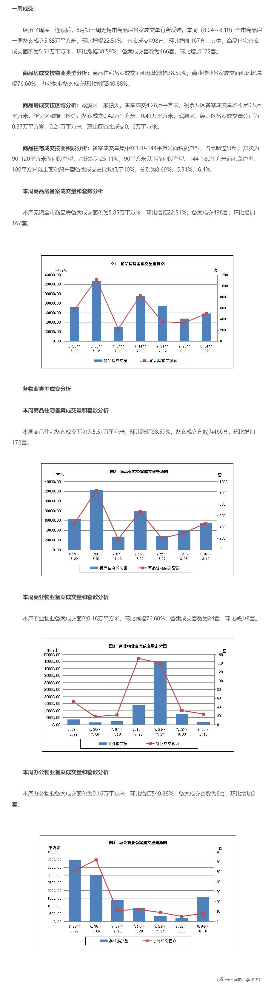 內容概述 8.04~8.10無錫商品房一周備案成交5.85萬平方米