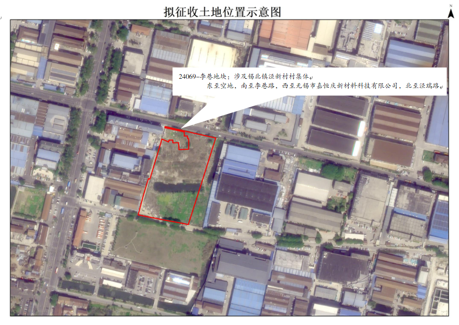 本次擬征收土地位于錫北鎮涇新村村集體范圍內。擬征收土地位置詳見附圖。