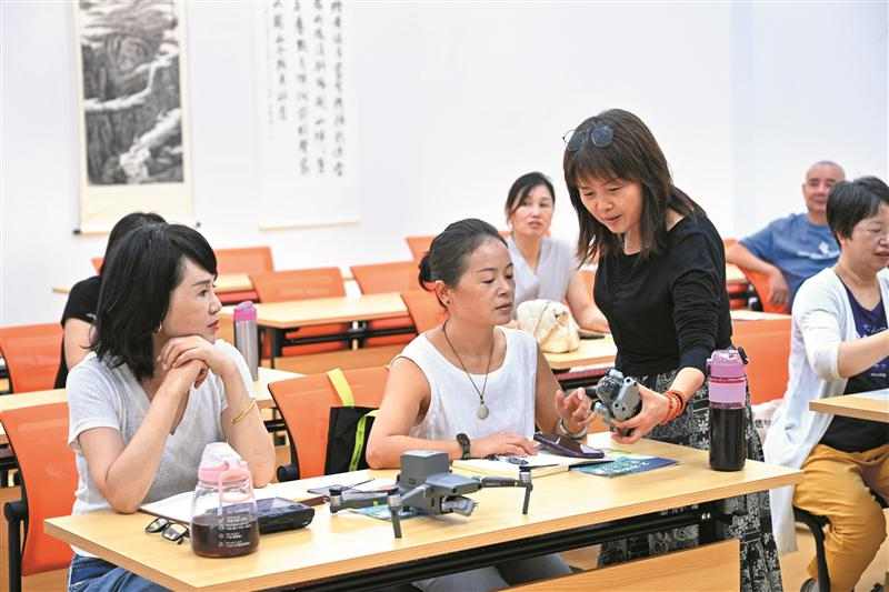 太湖新城老年大學共開設31個班,既有器樂、舞蹈、書畫類和太極等頗具傳統特色的課程,還有視頻制作、手機攝影、無人機拍攝、DeepSeek應用等專業性很強的課程。