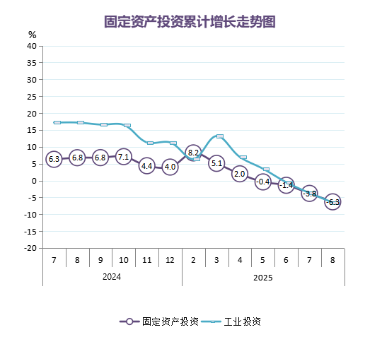 | 內容概述 | 2025年1-8月固定資產投資下降6.3% | ||||