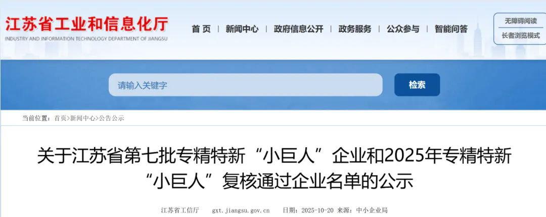 專精特新“小巨人”企業是指在細分市場具有較強競爭力、專業化程度高、創新能力強、發展潛力大的中小企業,是國家重點培育的優質中小企業群體。此次全省共有807家企業入圍,無錫入圍數量占全省14.7%。截至2025年,無錫累計培育國家專精特新“小巨人”企業463家,繼續保持全省第二。