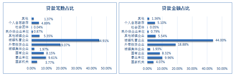 2022年一季度職工貸款筆數及貸款金額按單位性質分類占比圖