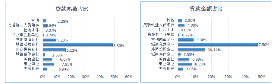 2023年二季度職工貸款筆數(shù)及貸款金額按單位性質(zhì)分類占比圖