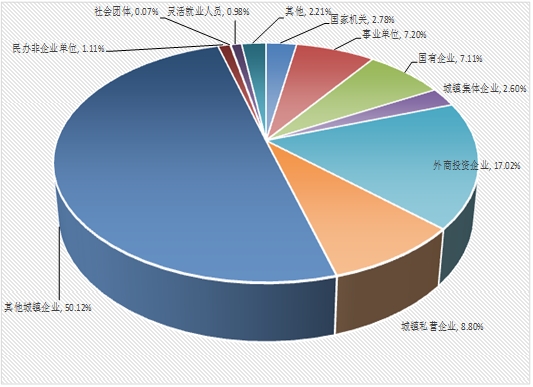 從繳存主體看,以非公群體為主,繳存人數占當季實繳職工數的80.31%,其中城鎮私營企業及其他城鎮企業職工繳存占比最高。具體繳存結構如下: